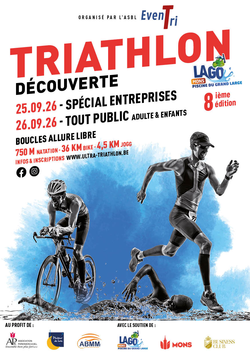 Comme chaque année depuis 2017, l'asbl Eventri soutenu par le LIONS Club Mons-Hainaut organise un Triathlon découverte.